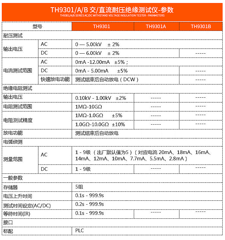 | 測試時間設定(AC/DC) | 0.2s - 999.9s |