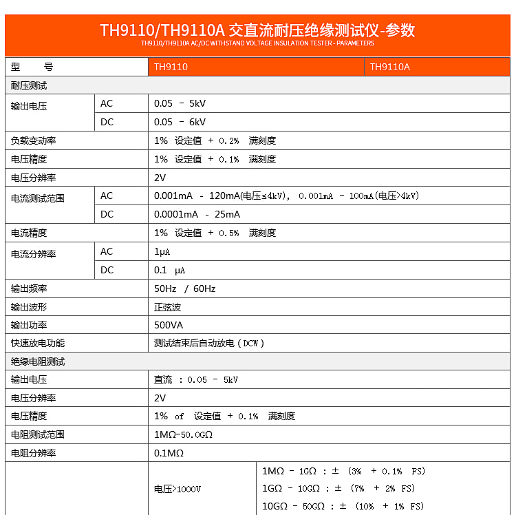| 輸出電壓 | AC | 0.05— 5.00kV±(2%讀數+5個字),頻率50Hz、60Hz可面板選擇 |
