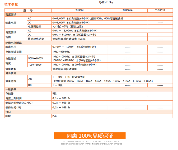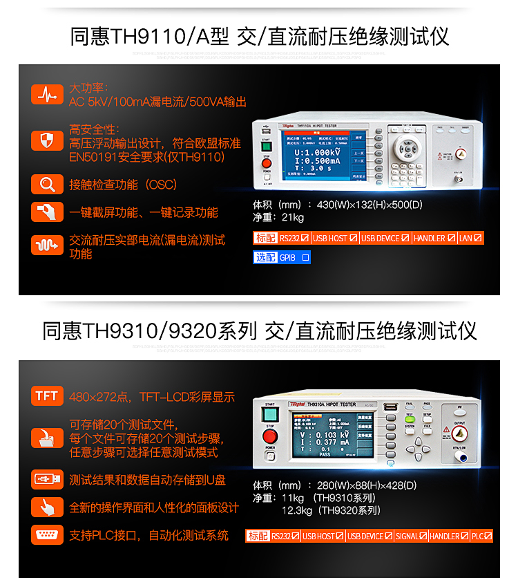 ■ 同惠TH9310A絕緣耐壓測試是一款小功率經濟型智能安規測試儀器。體積小、重量輕、外形美觀、操作簡便。同惠TH9310A絕緣耐壓測試可廣泛應用于家用電器、變壓器、電氣設備、元器件的安全性能檢查。